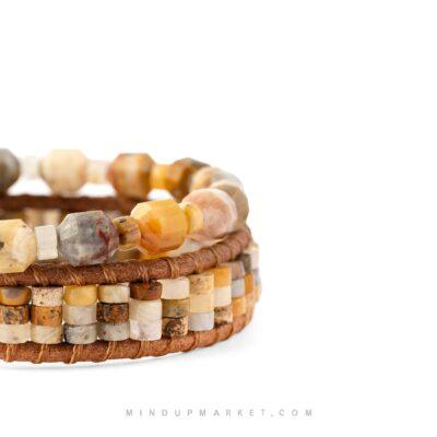 تمامی دستبندهای سنگی مایندآپ با سنگهای طبیعی و انتخابشده ساخته میشوند تا ظاهر، بافت و حس واقعی سنگ حفظ شود.ساخت کاملاً دستساز