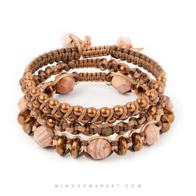 تمامی دستبندهای سنگی مایندآپ با سنگهای طبیعی و انتخابشده ساخته میشوند تا ظاهر، بافت و حس واقعی سنگ حفظ شود.ساخت کاملاً دستساز