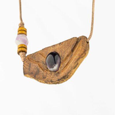 گردنبند چوبی ترکیب با سنگ طبیعی