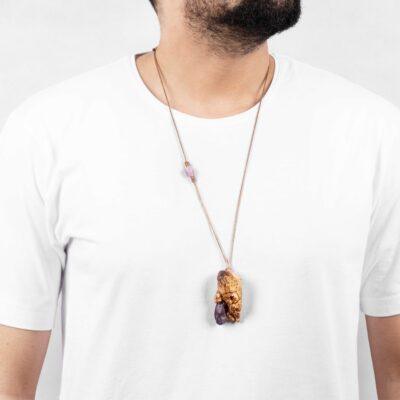 در برخی مدل‌ها، چوب با سنگ‌های معدنی اصل ترکیب می‌شود تا علاوه بر زیبایی، اصالت متریال و حس طبیعی اکسسوری حفظ شود؛ شناخت سنگ واقعی از نمونه‌های مصنوعی در این انتخاب اهمیت زیادی دارد.