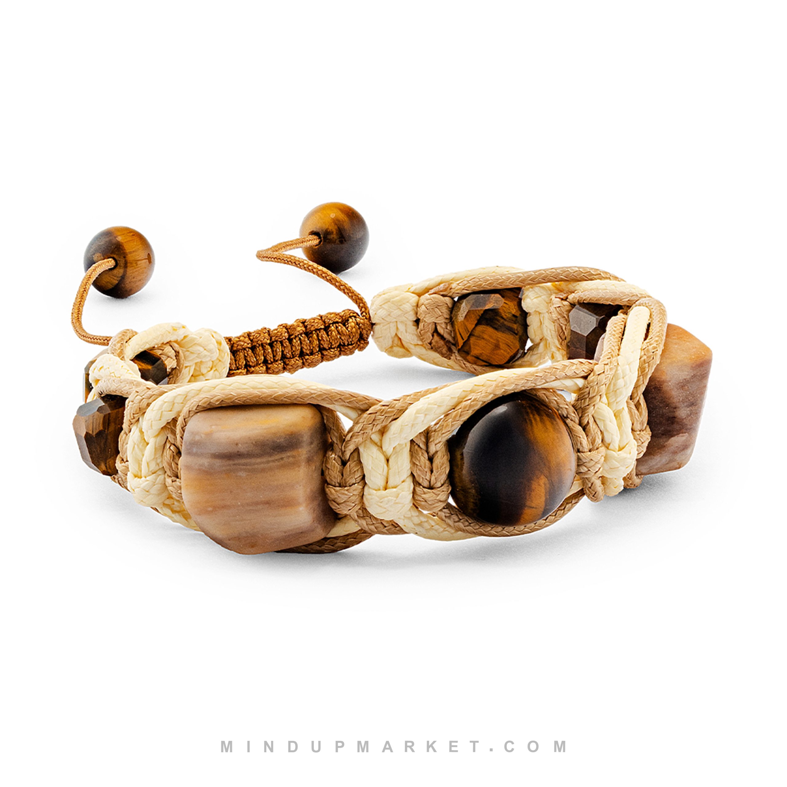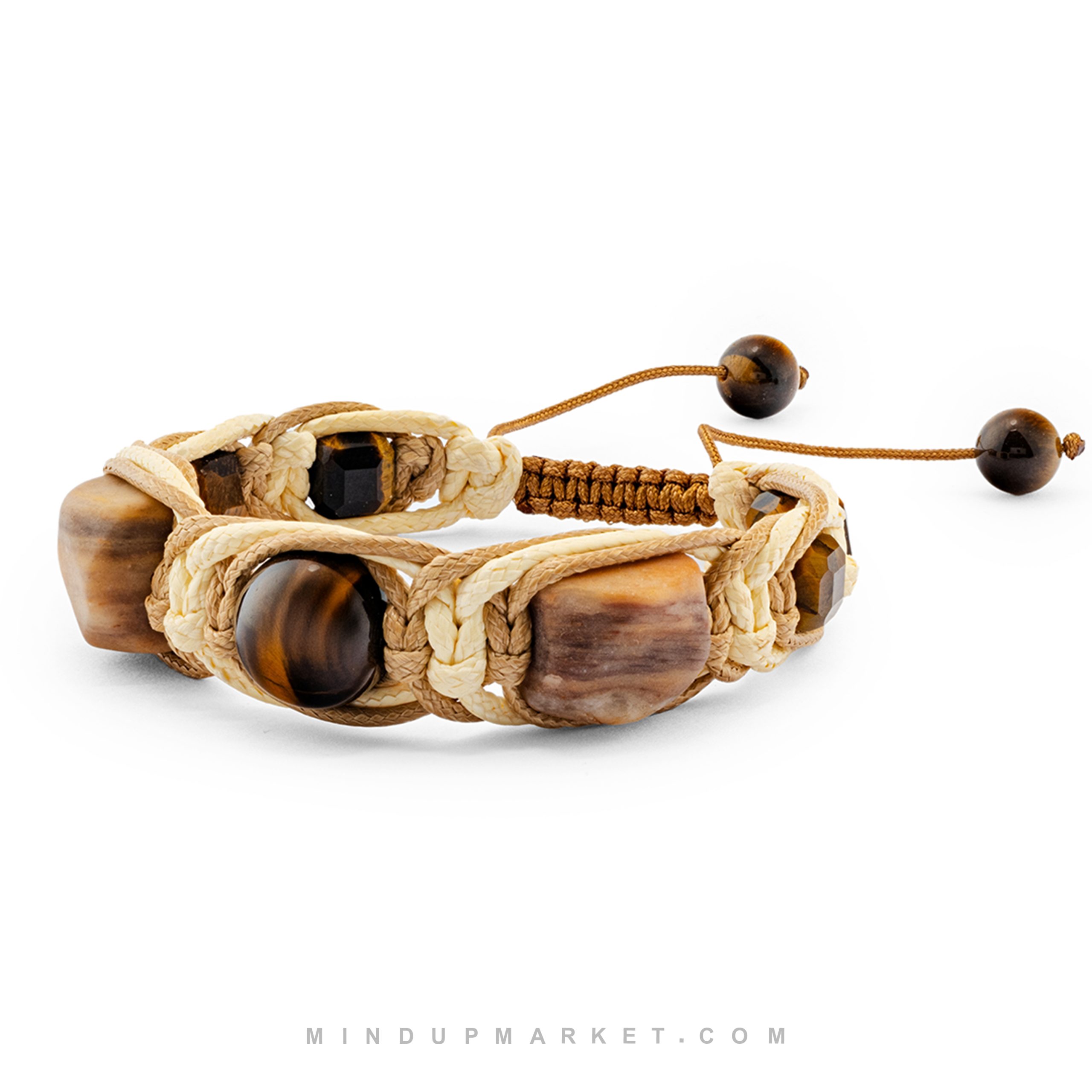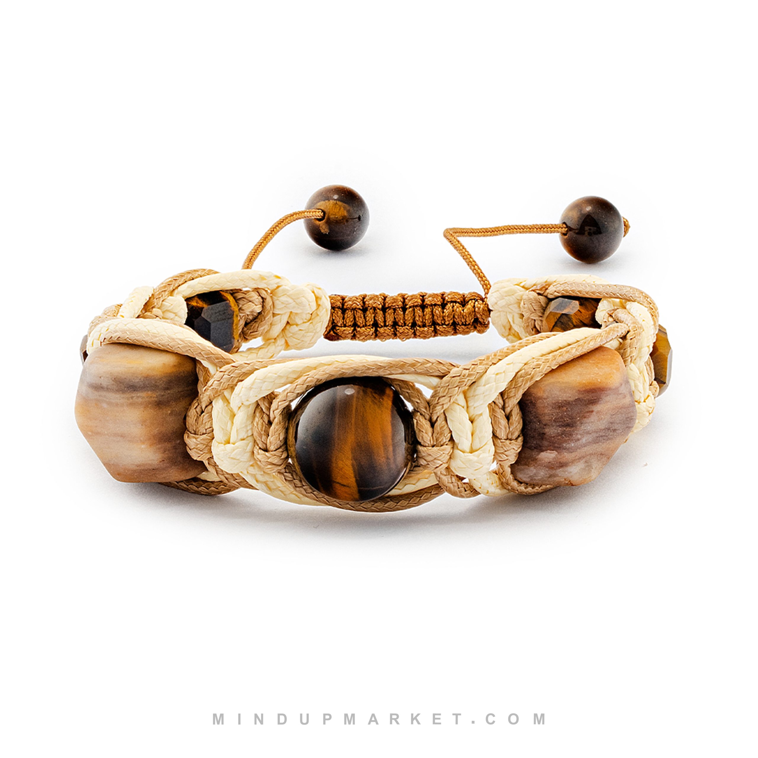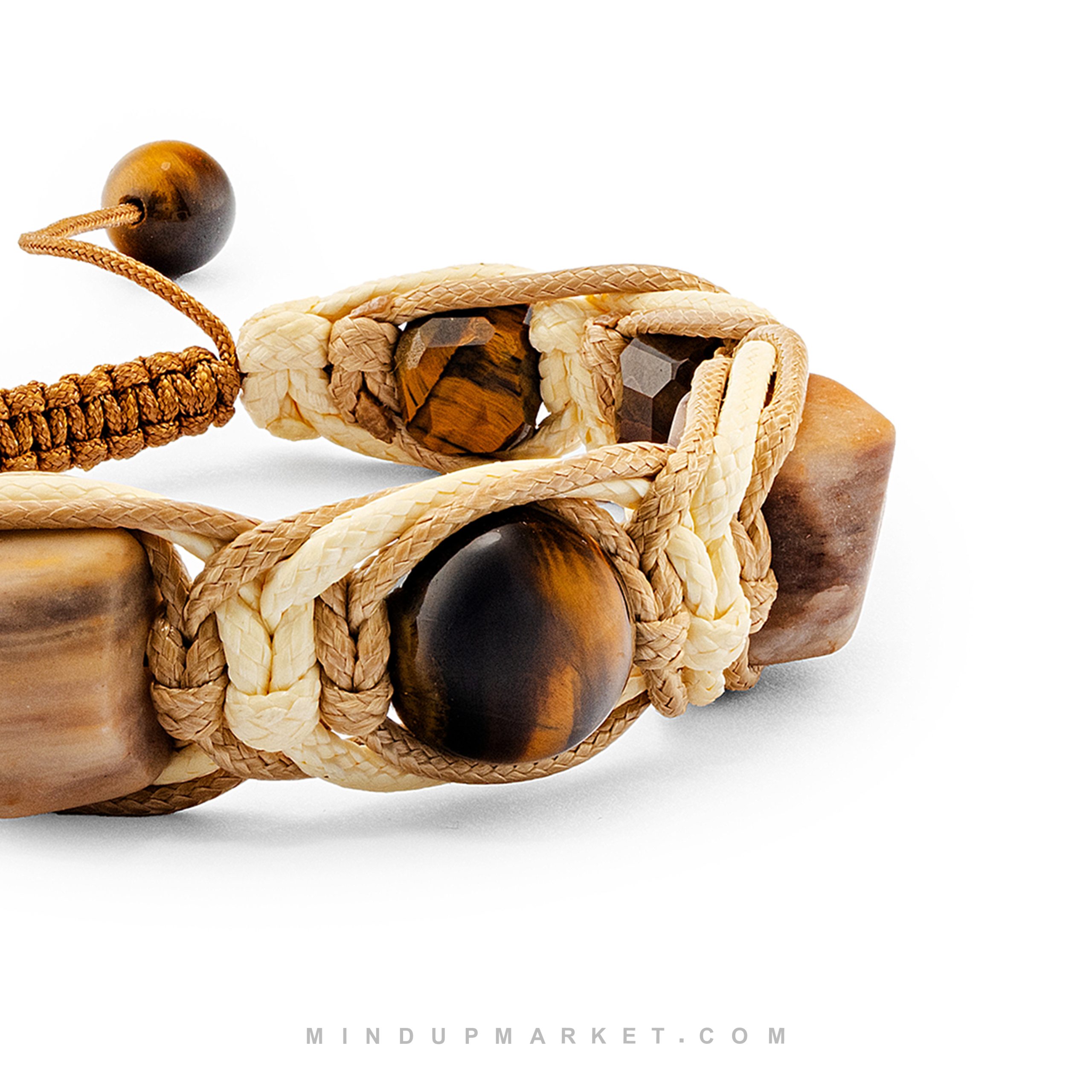 - دستبند ماکیاتو با ترکیب سنگ چشم ببر و جاسپر، الهام گرفته از طیف های گرم قهوه.