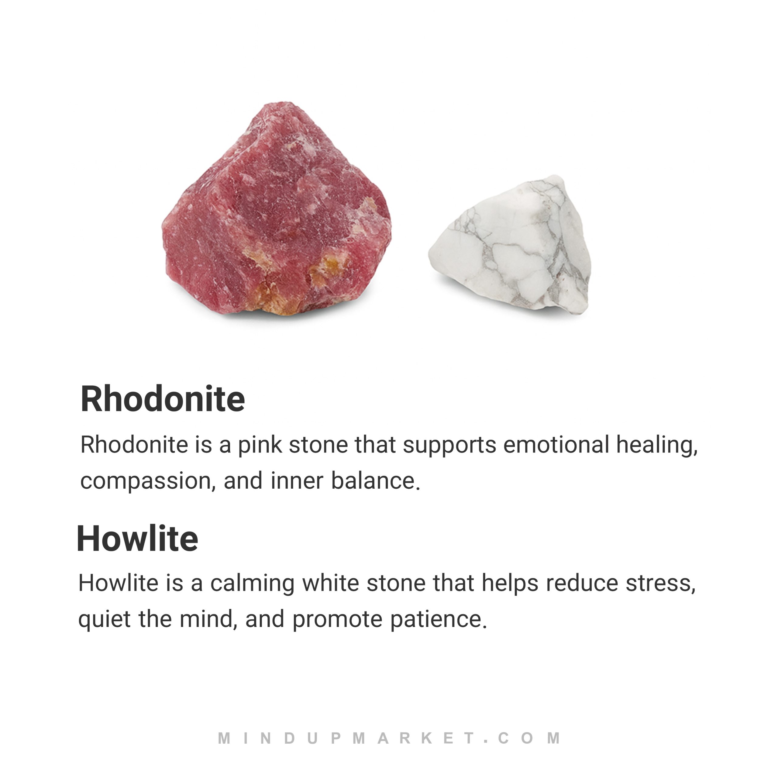 - ساختهشده از ردونیت برای عشق و همدلی، هاولیت برای آرامش ذهن.