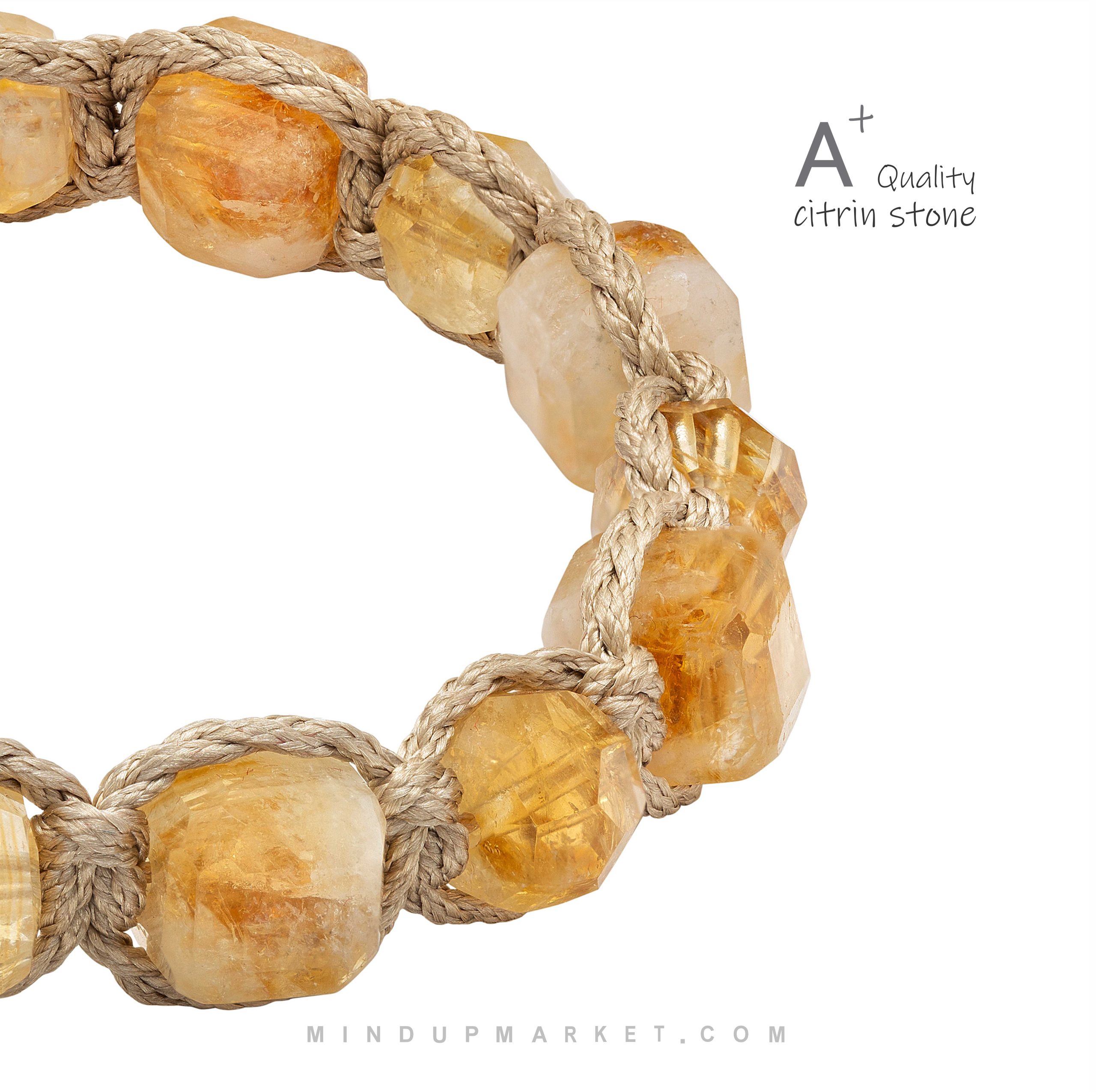 دستبند نور از سنگ سیترین نامنظم واشری طراحی و ساخته شده است . این دستبند در دو سایز زنانه و مردانه قابل سفارش میباشد.