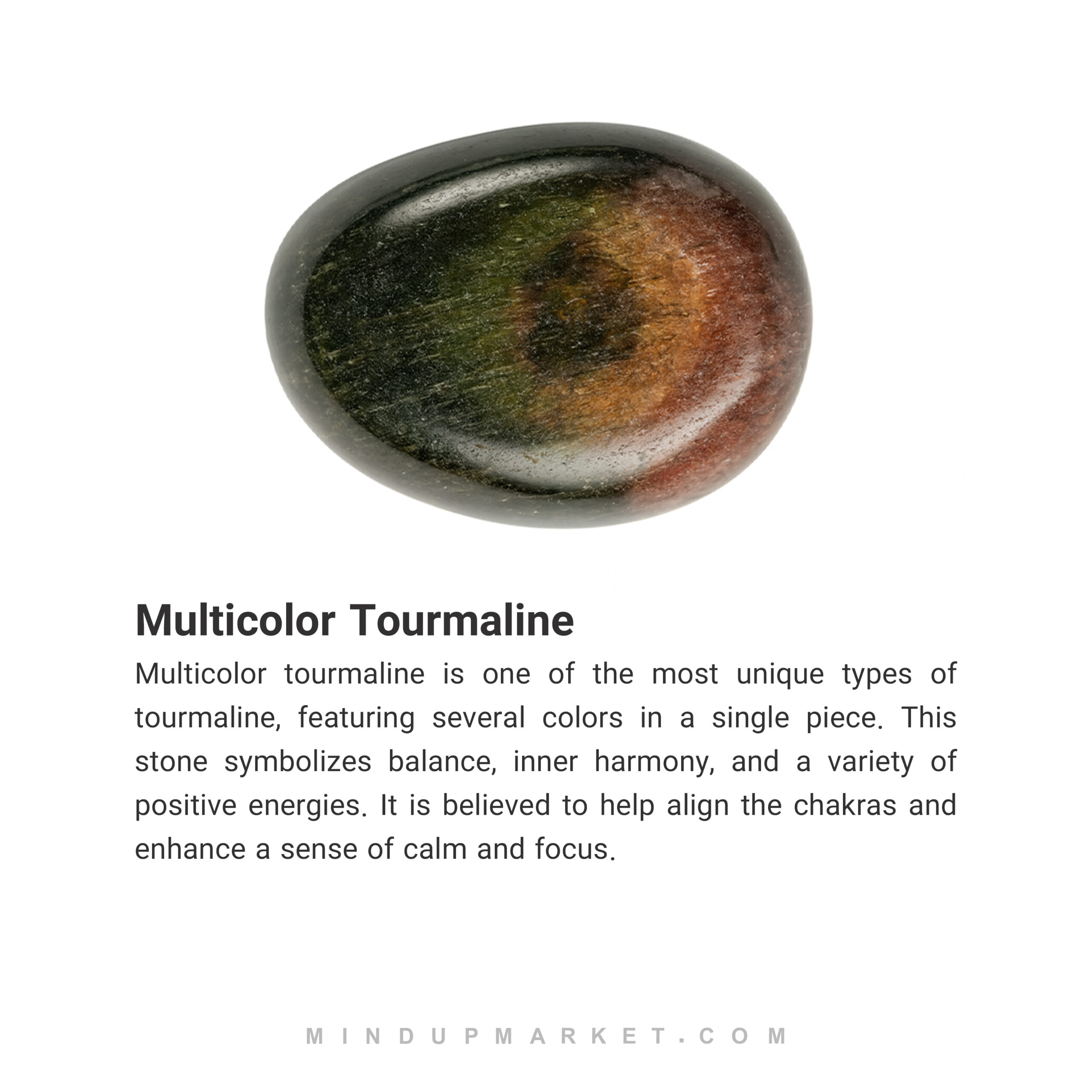 - ساختهشده از سنگ تورمالین مولتیکالر اصل برای انرژی مثبت و تعادل درونی.