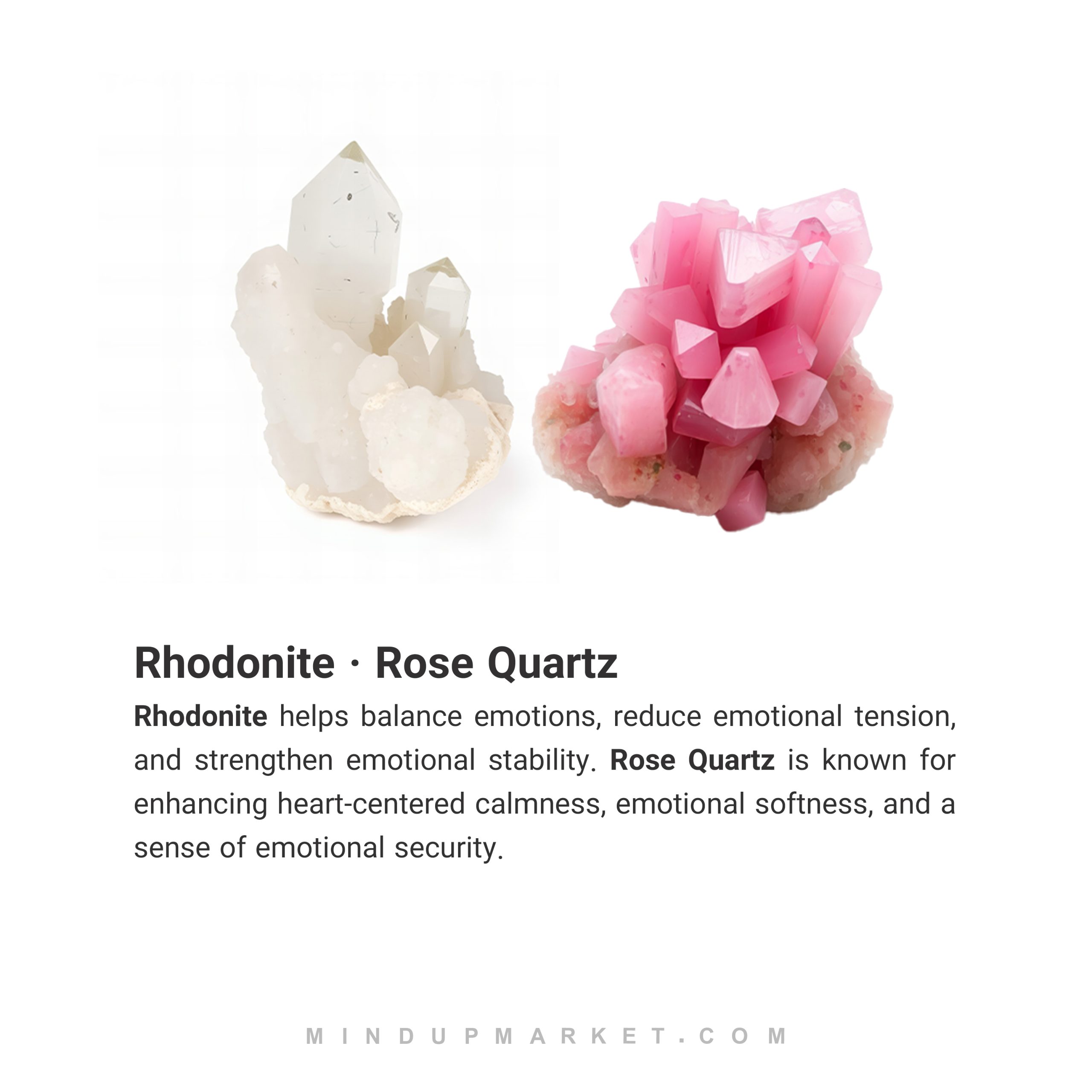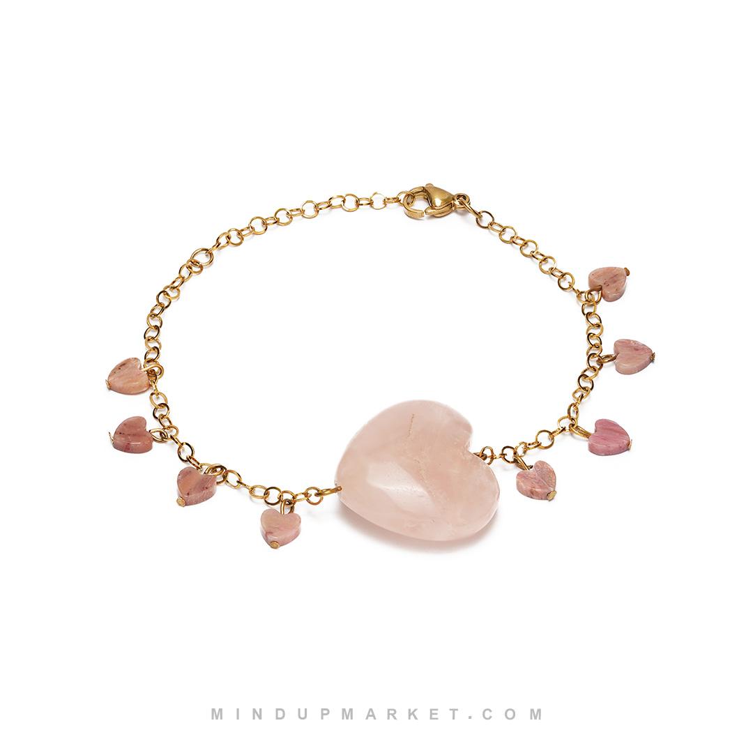 - ساختهشده از سنگ ردونیت و رزکوارتز، سنگی برای عشق، آرامش و حالِ خوب.
