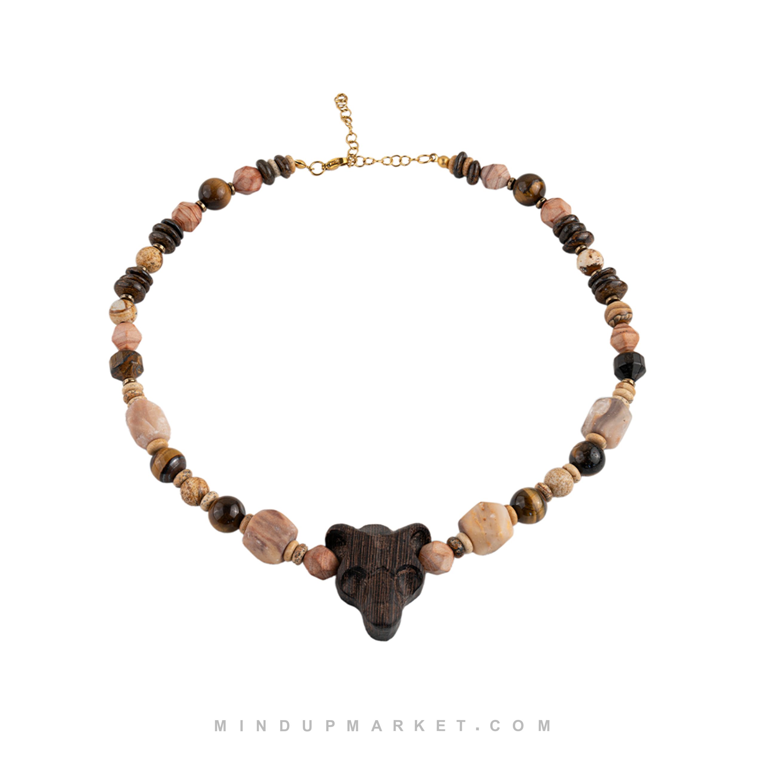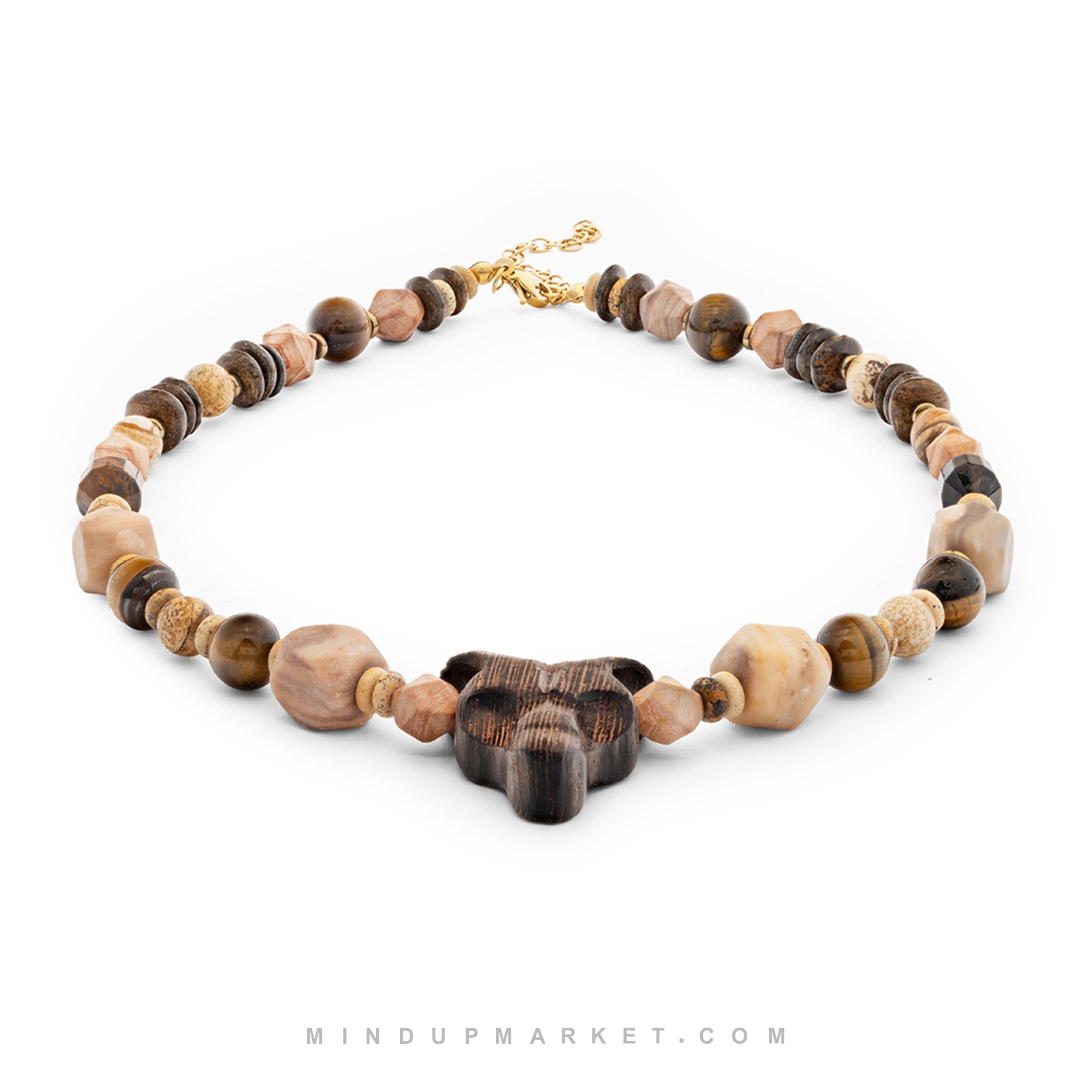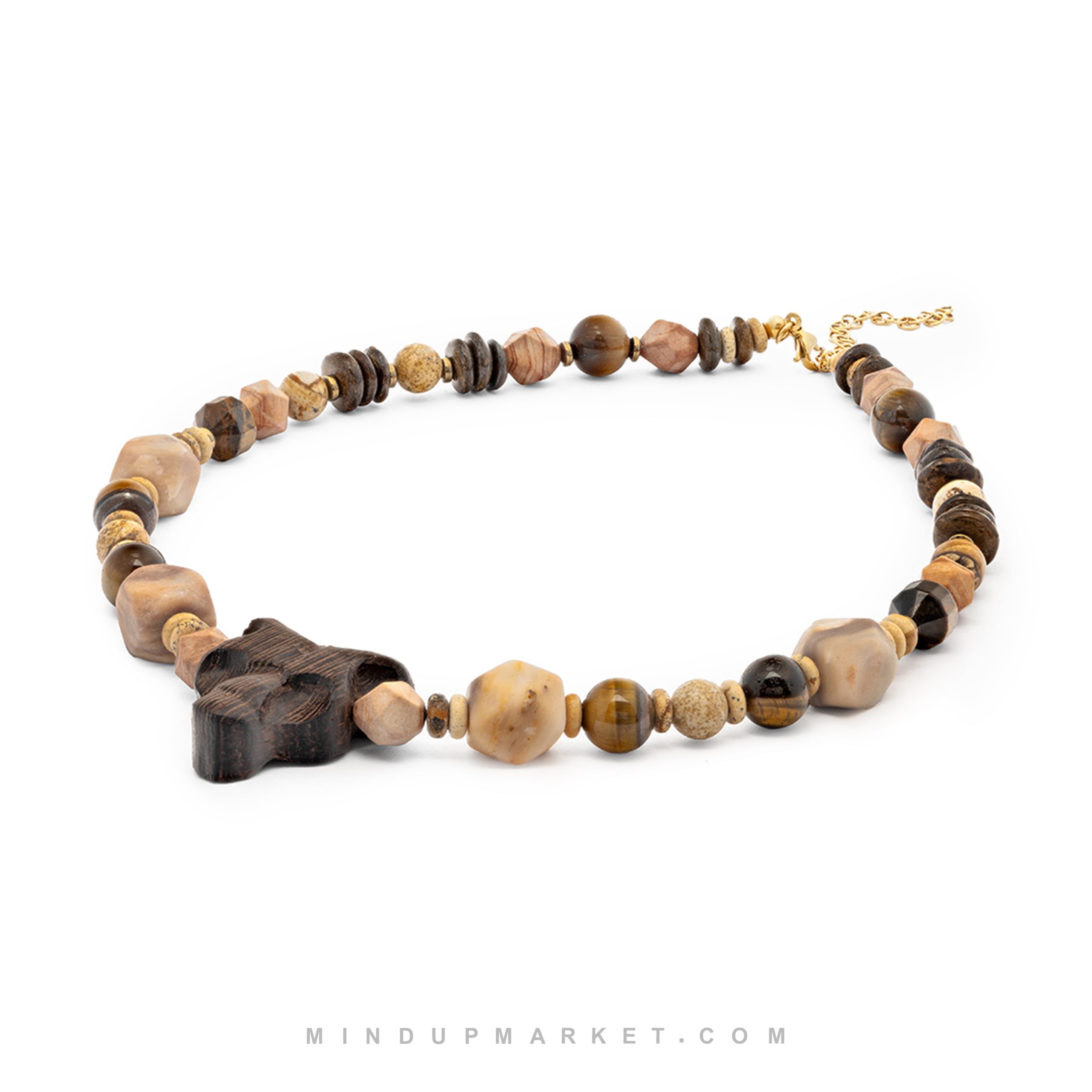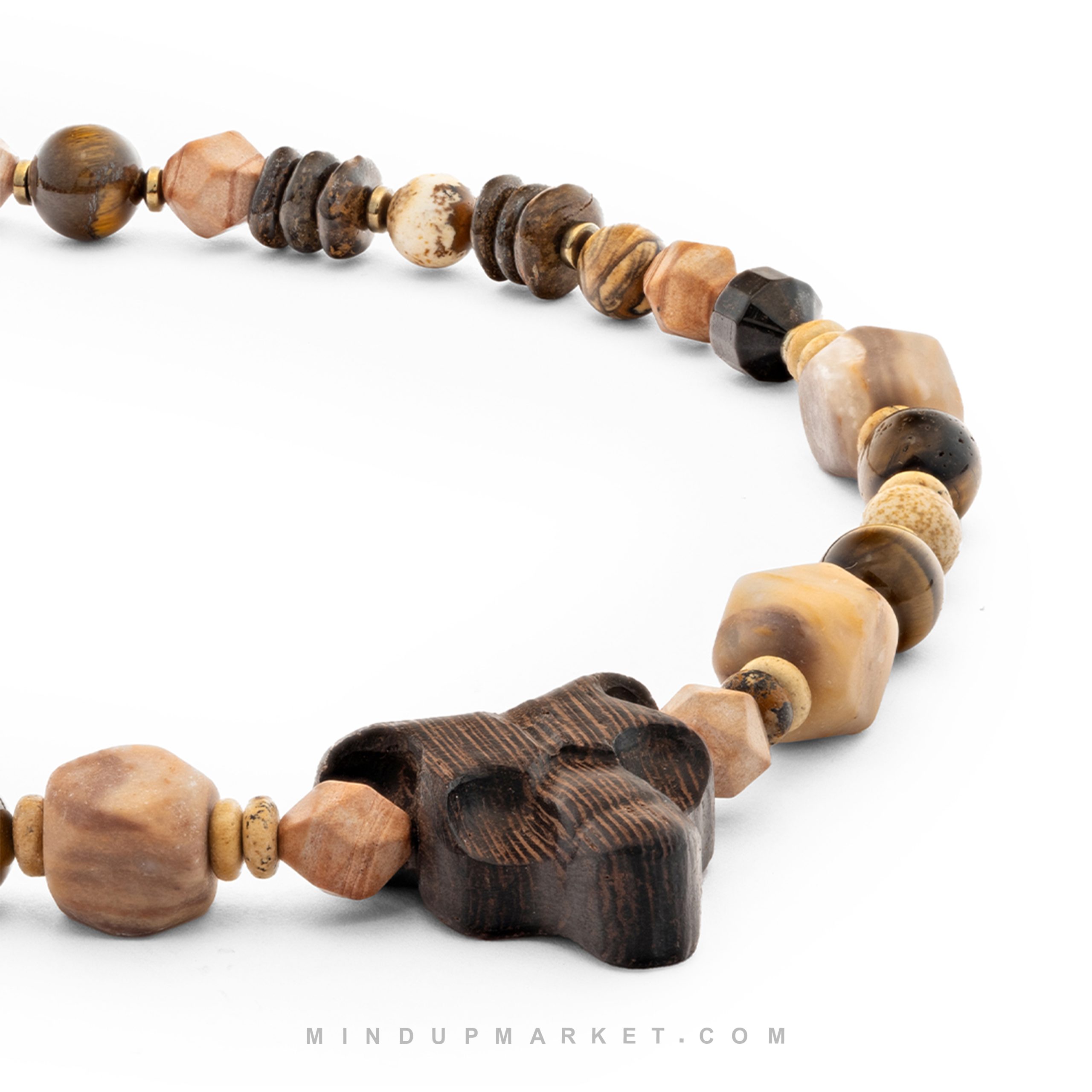 - ساختهشده از سنگ چشم ببر برای تمرکز، جاسپر برای ثبات و چوب ونگه برای اصالت.