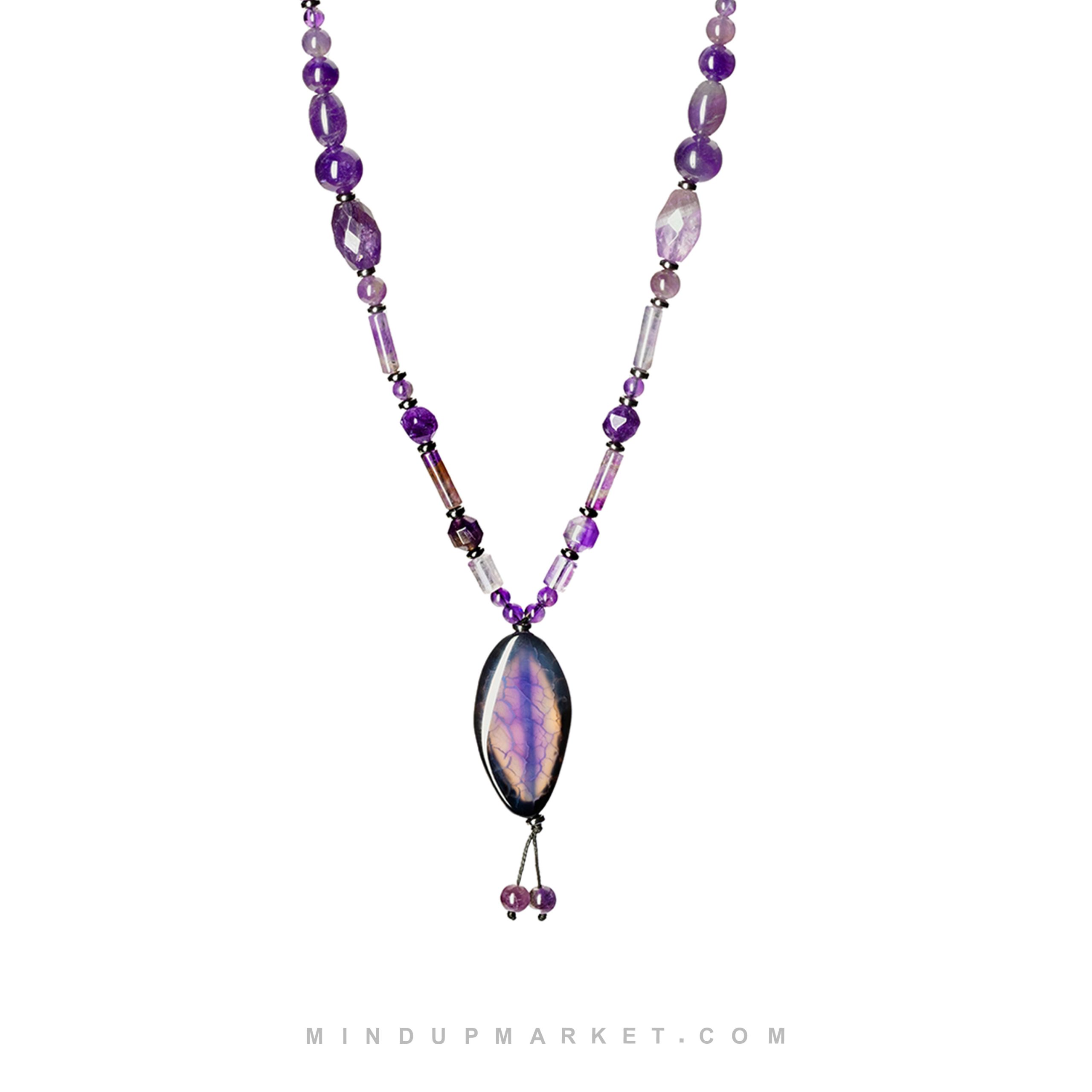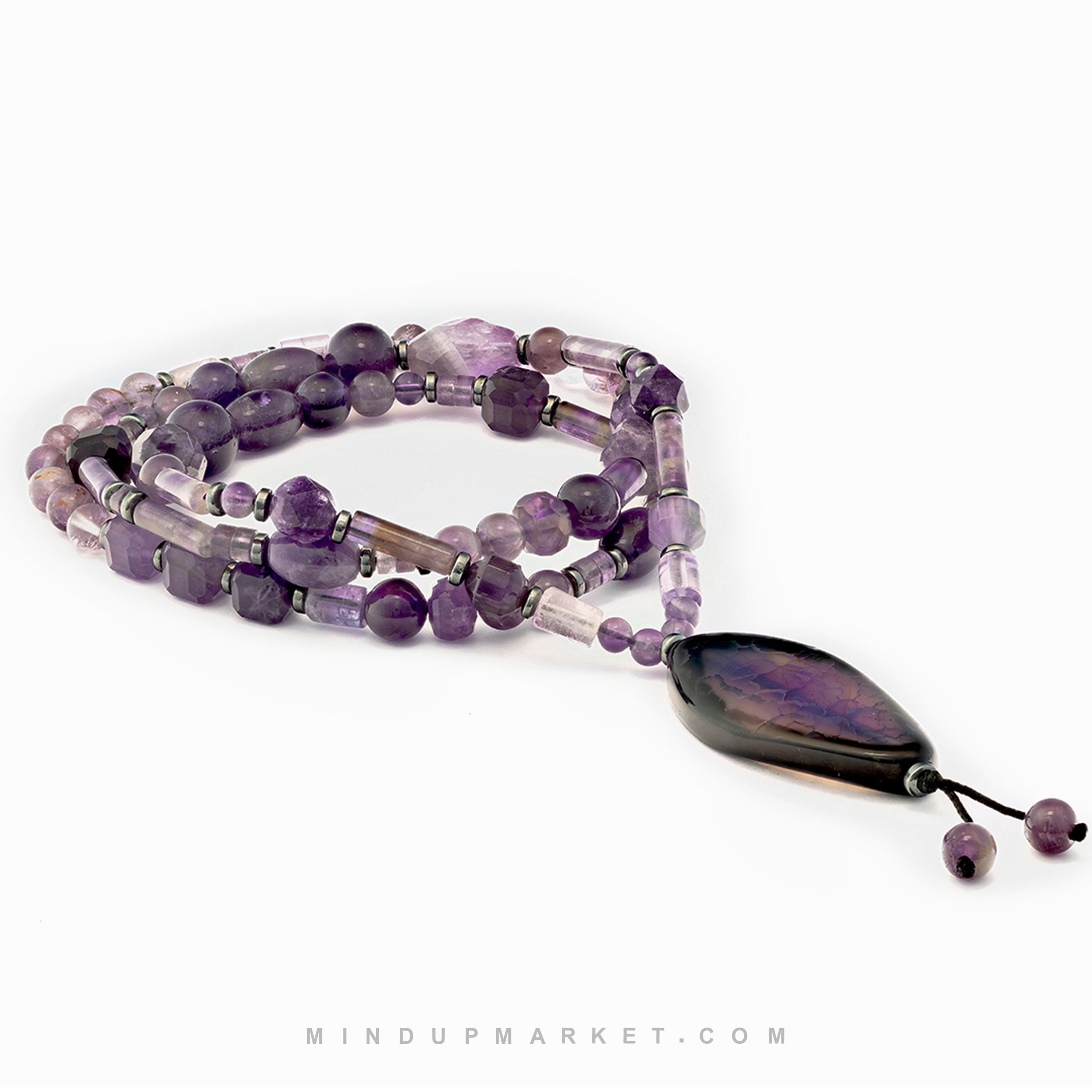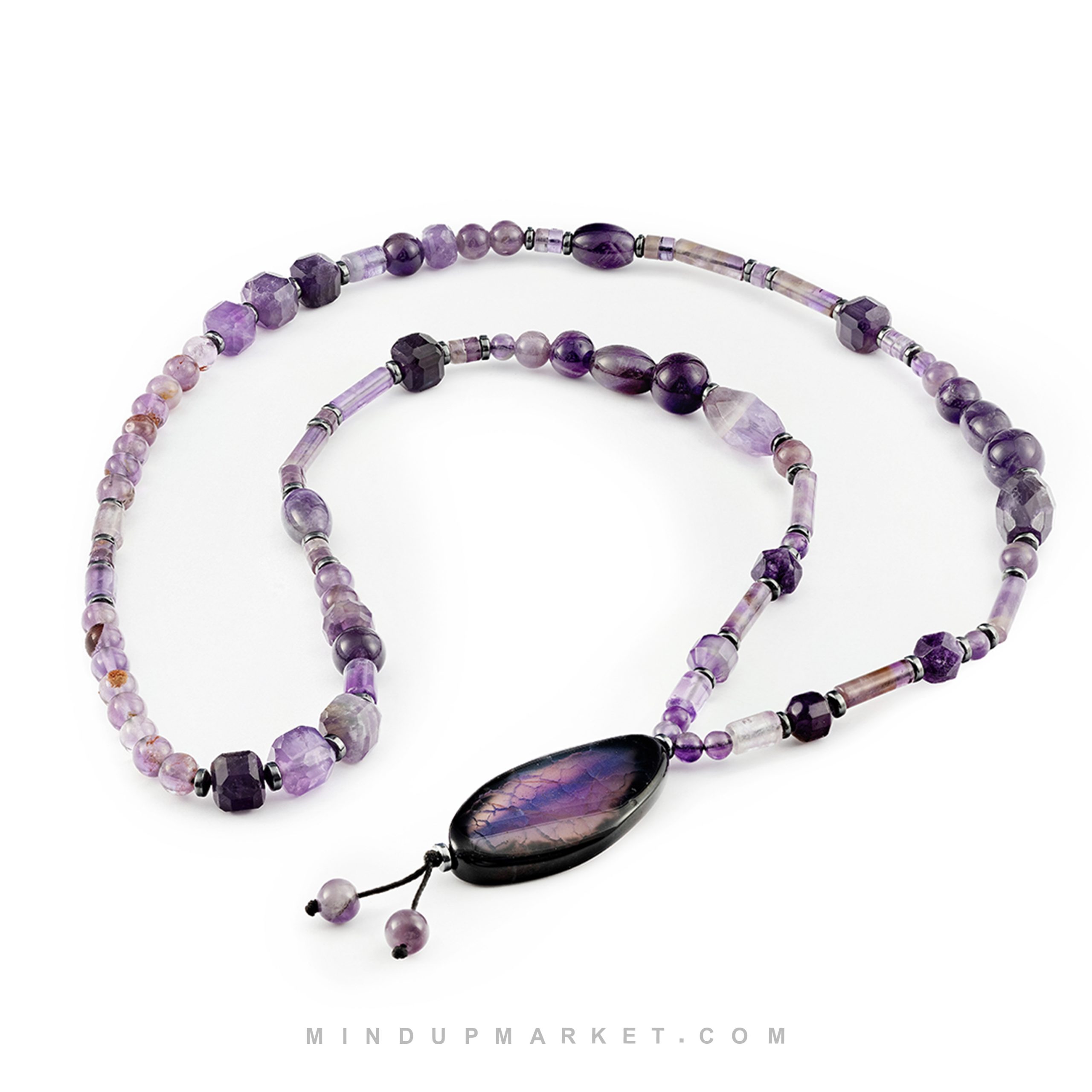 • گردنبند “مریدا” با آمیتیست و عقیق، ترکیب آرامش و قدرت.