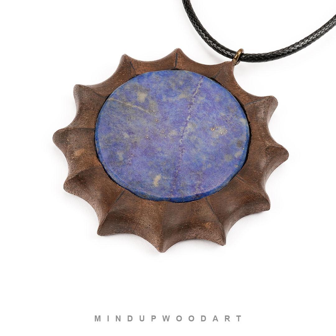 در ساخت این گردنبند چوبی دستساز از چوب گردو طبیعی استفاده شده است؛ چوبی با رنگ عمیق و حس زمینی که تعادل خوبی در کنار سنگهای پررنگ ایجاد میکند. در مرکز طراحی، سنگ لاجورد قرار گرفته؛ سنگی با سابقهای کهن در فرهنگها و تمدنهای مختلف که همواره نماد خرد، آگاهی و حقیقت بوده است.