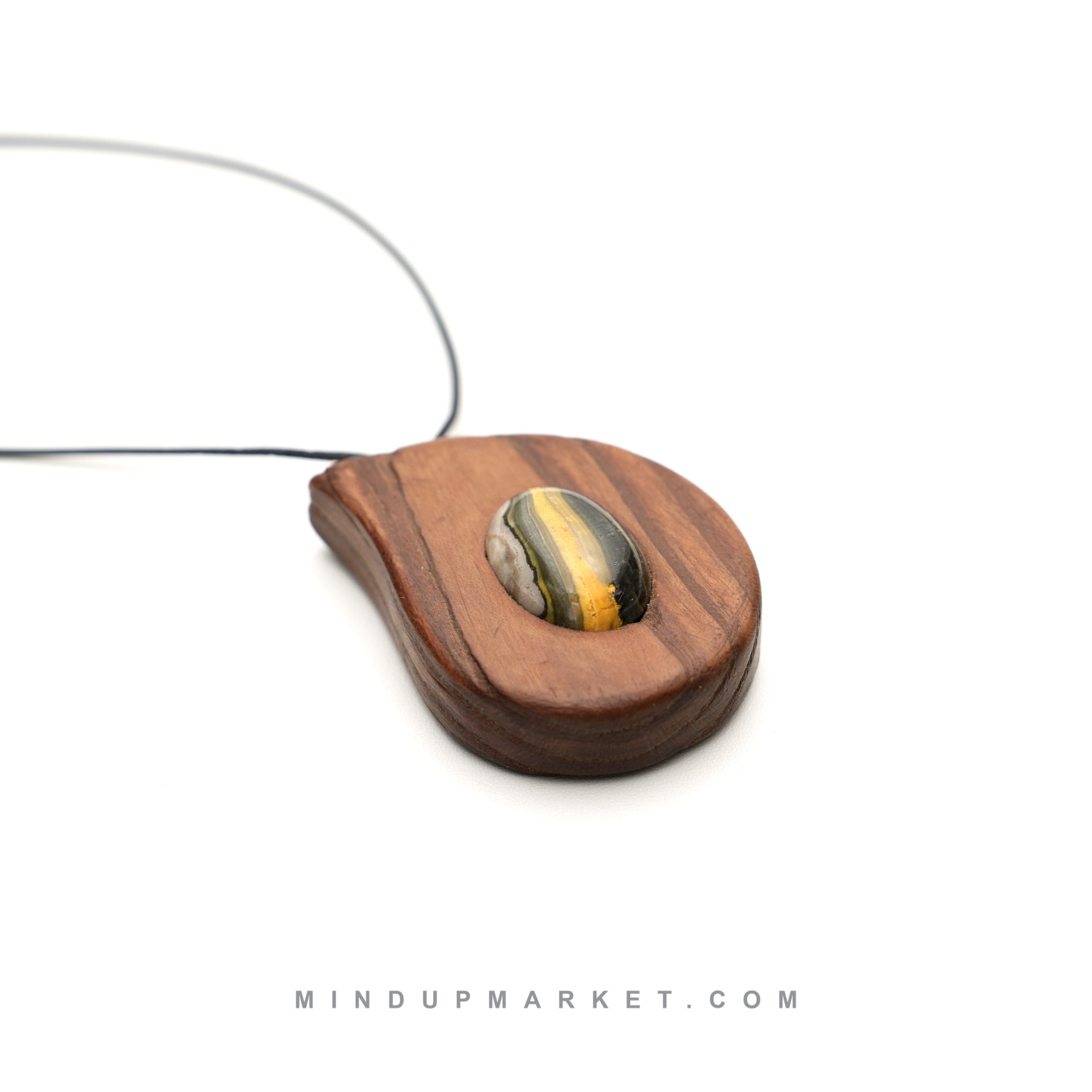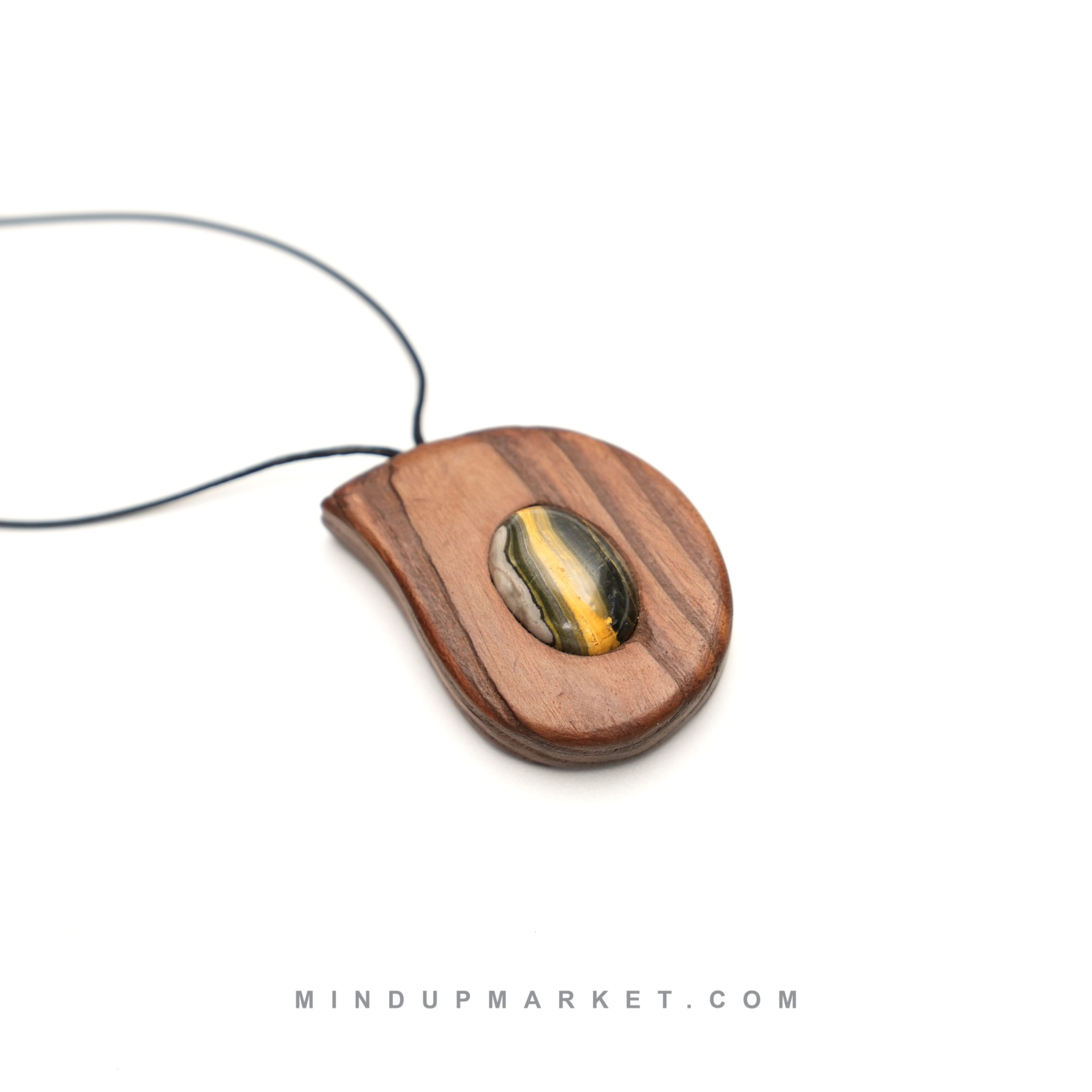 گردنبند سنگی سباستین، با طراحی خاص و استفاده از مواد طبیعی، جلوهای منحصربهفرد دارد. گردنبند سنگی سباستین از سنگ جاسپر، با رنگهای گرم و طرح های طبیعی اش، ساخته شده که نمادی از استحکام و پایداری است. ترکیب این سنگ با چوب سنجد، که به خاطر بافت نرم و رنگ روشن خود شناخته میشود، تضادی زیبا ایجاد کرده و حس آرامش و تعادل را به همراه دارد. سباستین، با این گردنبند، نه تنها یک زیورآلات زیبا، بلکه یک اثر هنری با الهام از طبیعت را به نمایش میگذارد.